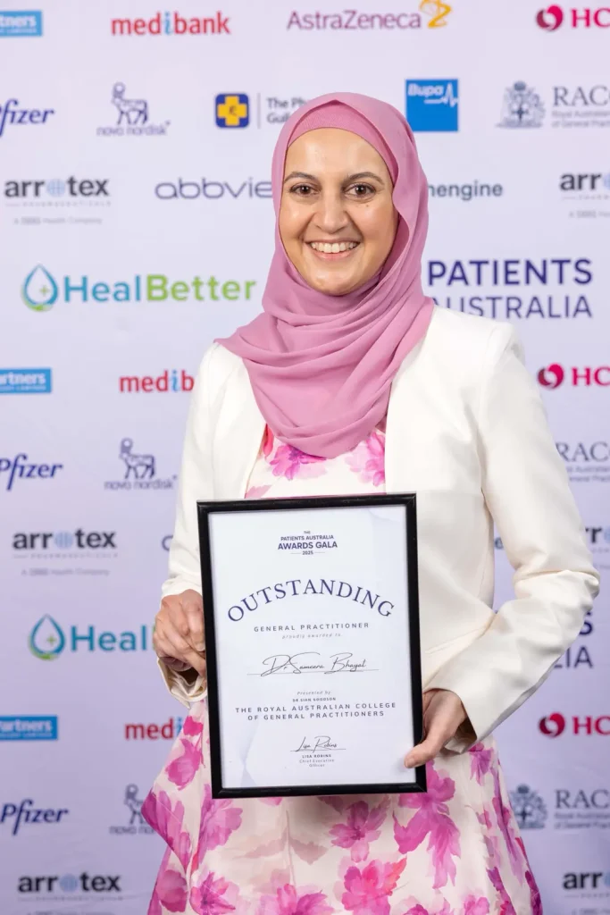 Dr Sameera Bhayat, a distinguished member of the Australian Islamic Medical Association (AIMA), has been awarded the prestigious Outstanding General Practitioner Award, a national recognition that celebrates excellence in primary care. This award honours a GP who embodies the highest standards of clinical excellence, advocates strongly for preventative healthcare, and demonstrates compassionate, patient-centred care, all qualities that Dr Bhayat exemplifies with distinction.
